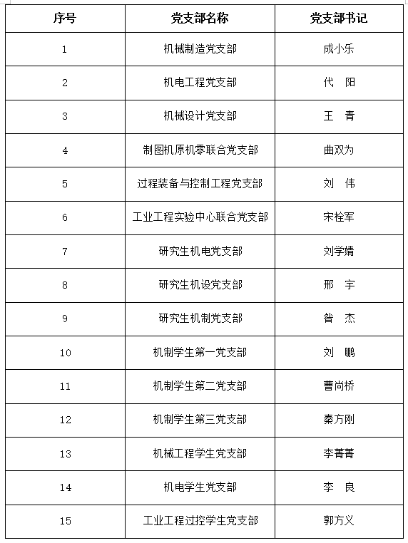机电工程学院党委现有党支部15个(教工支部6个、研究生支部3个、本科生支部6个),现有党员310人(教工党员66人,学生党员244人)。
