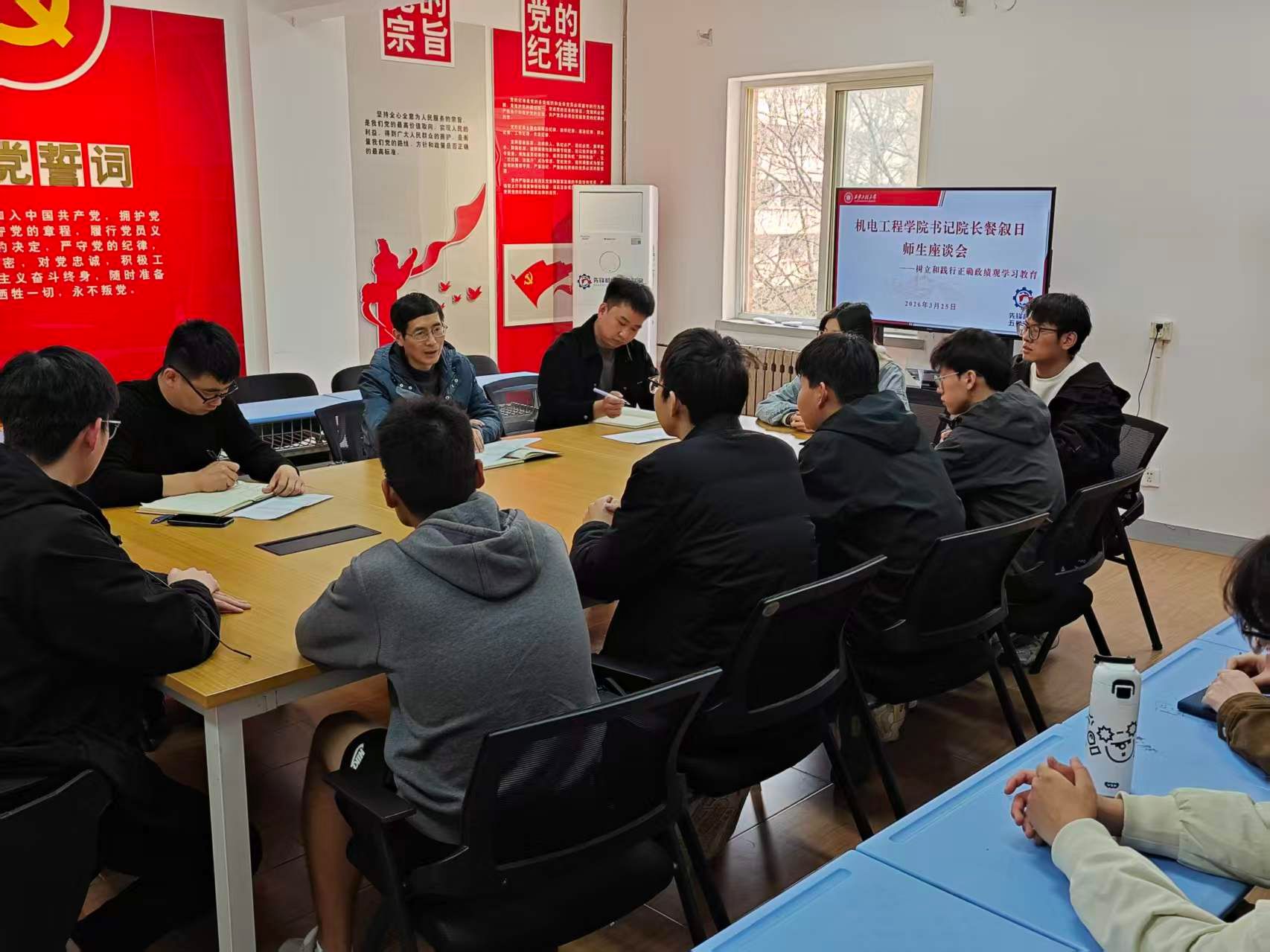 为深入学习贯彻习近平总书记关于树立和践行正确政绩观的重要论述,切实将学习成效转化为服务学生的生动实践,3月25日,机电工程学院在“一站式”学生社区举办书记院长餐叙日暨学生座谈会。学院党委书记阚佩、2024级本科生辅导员李良、研究生辅导员赵永鹏以及本科生、研究生学生代表参加了座谈会。