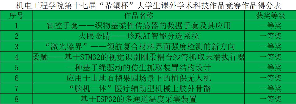 下一步,机电工程学院将组织获奖选手开展集中培训与作品打磨,邀请专家学者进行针对性指导,助力学生在学校总决赛中取得优异成绩。同时,学院将以 “希望杯” 竞赛为契机,持续深化创新创业教育改革,完善实践教学体系,搭建更多创新实践平台,着力培养具备创新精神、实践能力与家国情怀的高素质工程技术人才,为学校高质量发展与行业创新进步贡献力量。