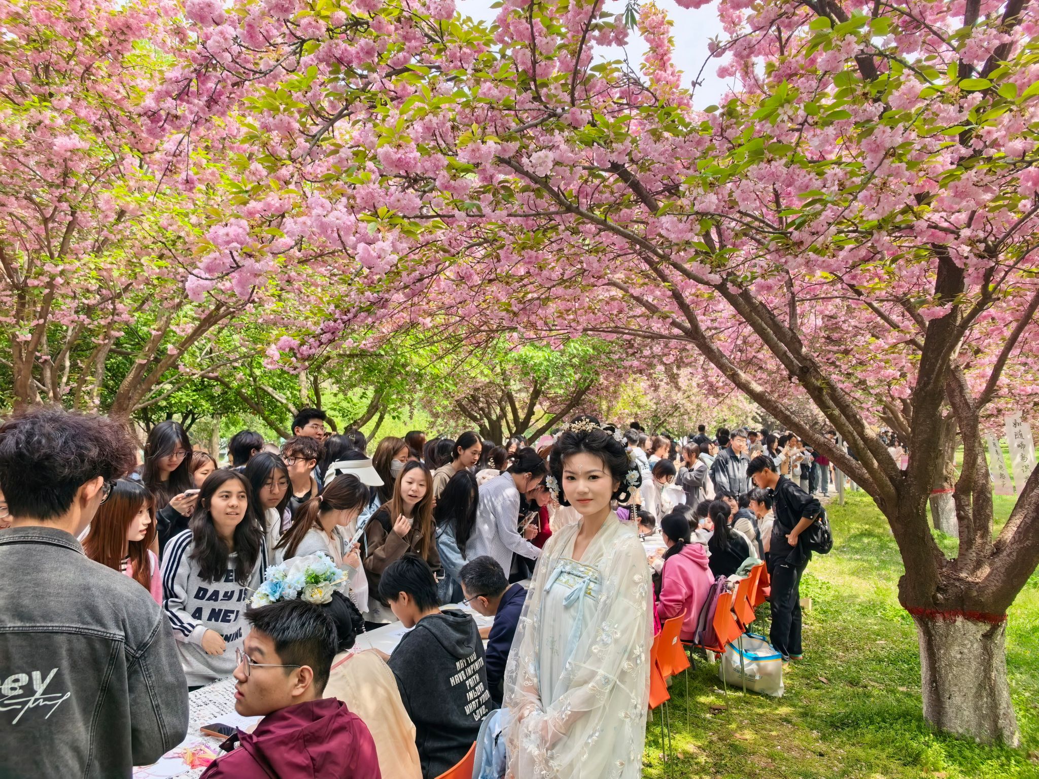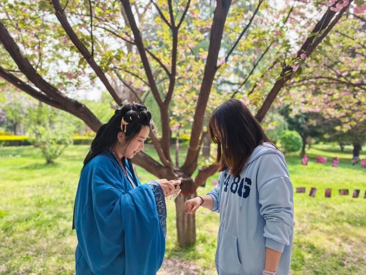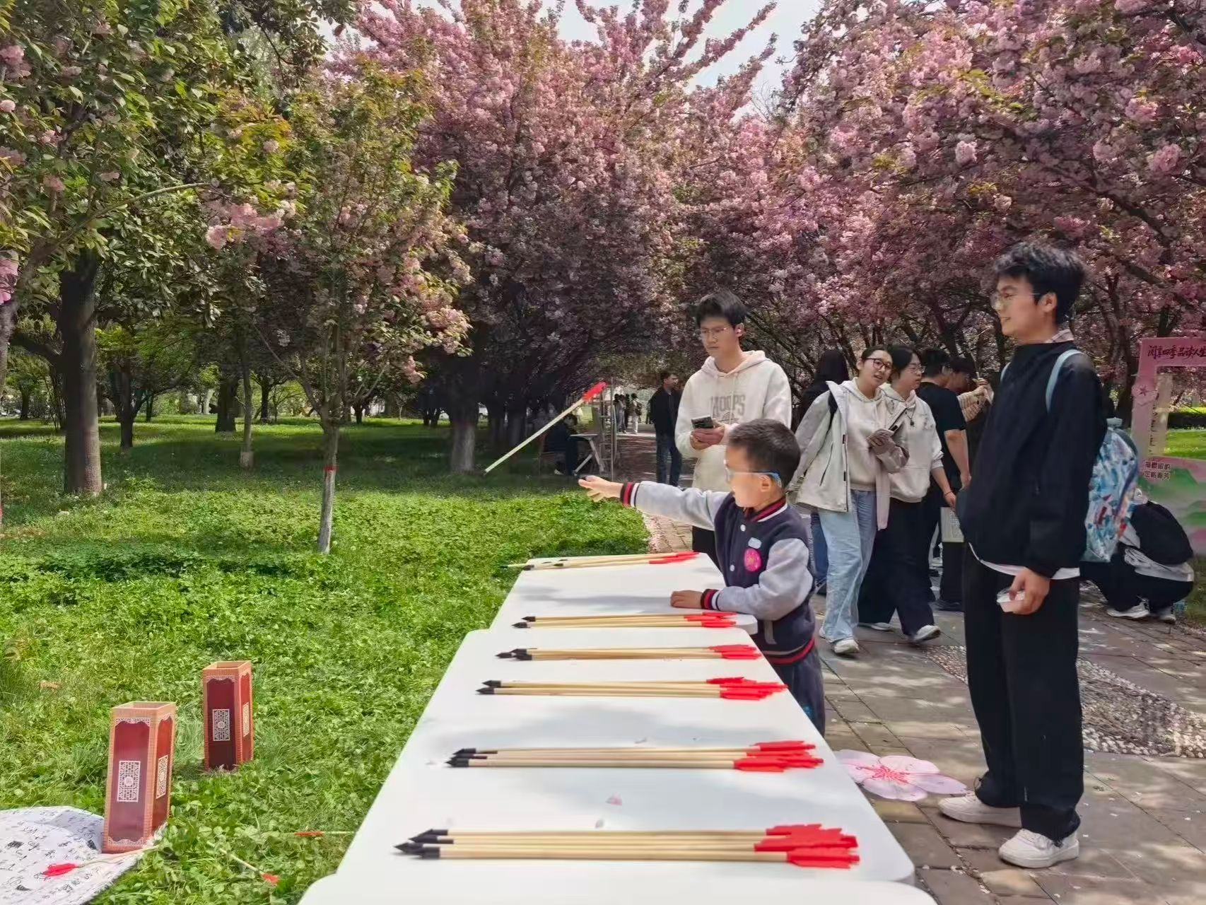 樱花大道内,书春、拓春、摄樱、对韵、投雅、换礼六大游园体验项目同步开放,趣味互动轮番上演,师生踊跃参与、乐在其中,在花海墨香中沉浸式感受校园文化的独特魅力。